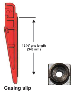 JOT Casing Pipe Slips are made out of best quality of alloy steel having an API taper of 4 inch per feet on the diameter, fitted with circular buttons and with 3 to 4 Nos of up right handles. Multi Segment design of slips ensure self centering of casings in the rotary table. Slips insert are so designed that these hold the casing pipe firmly with-out causing any damage. The advantage of multi segment design lies in the fact that by simply increasing or decreasing the number of slip segments, casing sizes from 5 inch to 30 inch OD can be handled with ease while dressing the slip with appropriate size of insert.